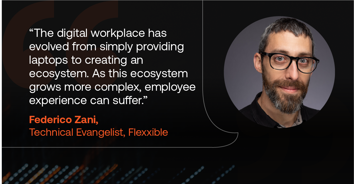 “The digital workplace has evolved from simply providing laptops to creating an ecosystem,” says Federico Zani, Technical Evangelist at Flexxible. “As this ecosystem grows more complex, employee experiences can suffer.”