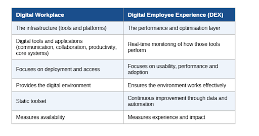 “The digital workplace is your technology infrastructure – the what,” continues Jenn Keane. “Digital Employee Experience is the outcome – the how well. Many organisations invest heavily in digital workplace tools but struggle to understand why adoption is low, or productivity hasn't improved.”